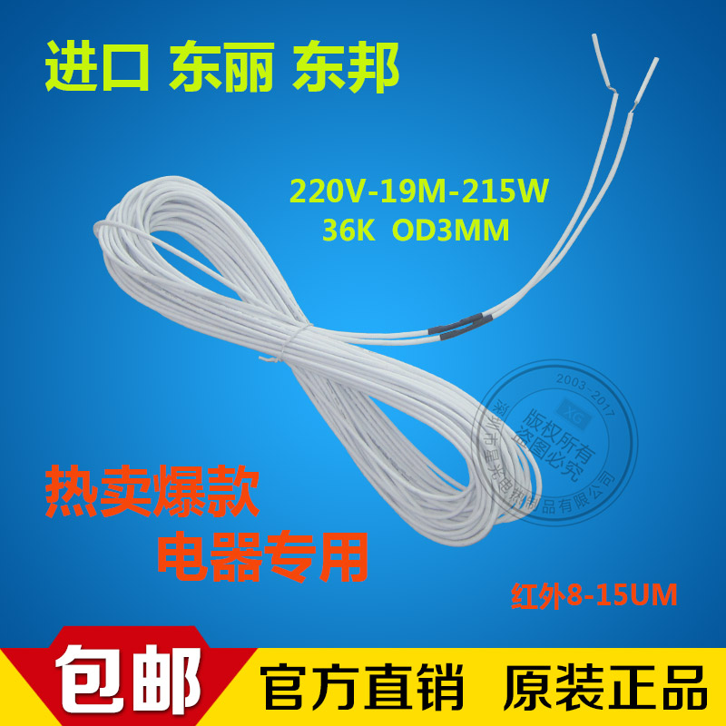 碳纤维发热线,简称电热线,通电加热时可以发射8-15UM的红外波段,故而也有远红外加热线之称呼,内部采用碳纤维为加热导体,导体颜色乌黑发亮,采用硅橡胶为绝缘层,以<Ω/M>为电阻单位,粗细单位<MM>颜色任意可选,产品耐温极限为200℃, 长期150℃以下使用寿命长达15年以上, 产品抗拉和弯曲性能好,通常可以承受10KG-50KG不等的拉力,产品弯曲可以达到10万次以上,产品成本低廉,被行业认定为卖点好的加热组件之一